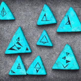 Triangle stone with teal glowing runes flying in the space, fulled with form of digital social capital