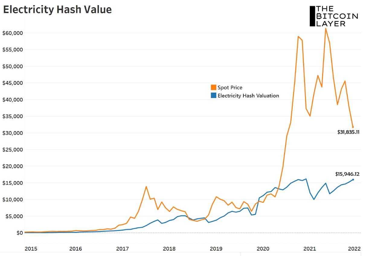 Биткоин торгуется с постоянной премией, от цены добычи, только дважды опускаясь ниже этого базового уровня за всю историю метрики.
