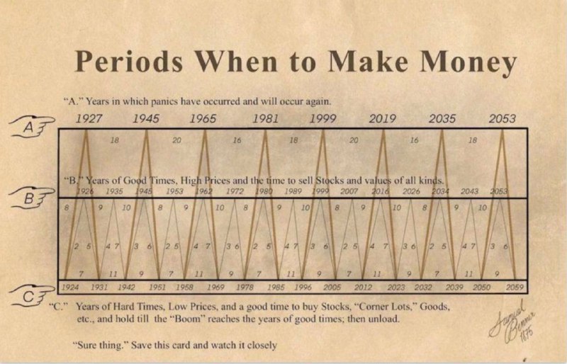 С: Годы тяжелого времени, низких цен: нужно покупать акции, товары и пр., чтобы держать их до момента наступления хороших времен и тогда продать