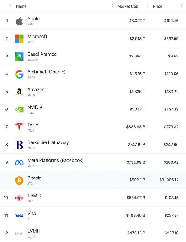 Топ карпораций-компаний с самой крупной капитализацией активов и Bitcoin в том числе