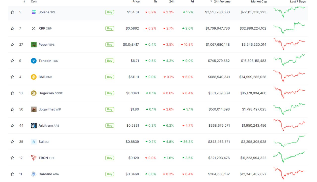 TOP 10 самых ликвидных Альткоинов августа 2024 года