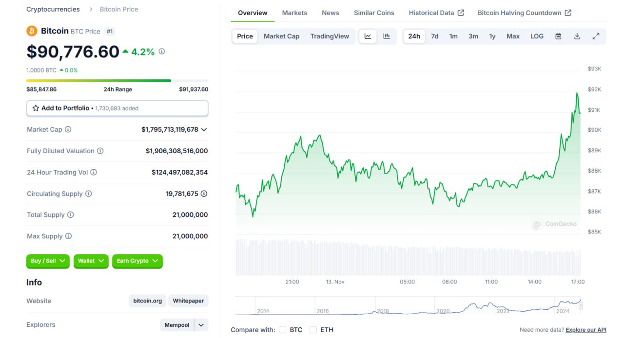Bitcoin не останавливается новые хаи пробиты невероятно уже 90 000 тыс.долларов за одну монету