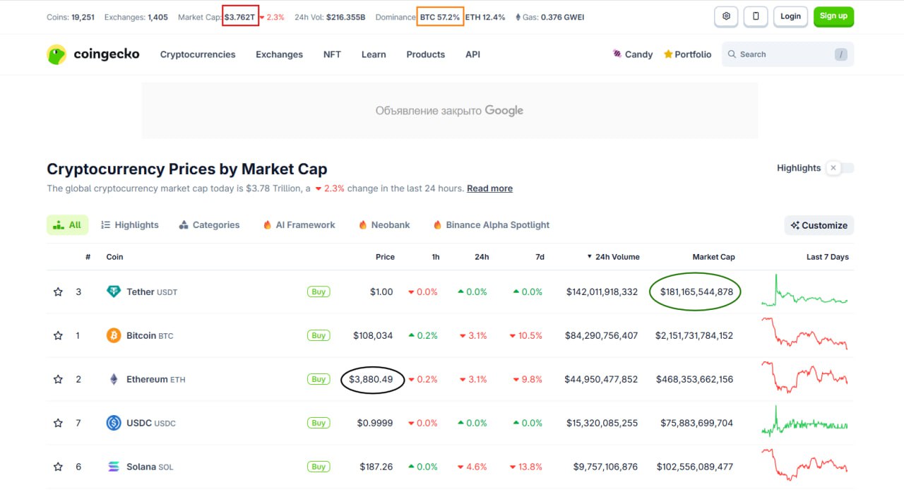 🪙 Tether USDT - как всегда лидер объёмов торгов и наращивает капитализацию она составляет уже 181 лярд!