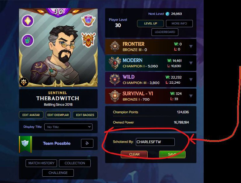 > 1. В аккаунтах Modern Champion, где играют ученые, необходимо зарегистрировать ученого на аккаунте. Это делается на странице аватара — см. скриншот.
